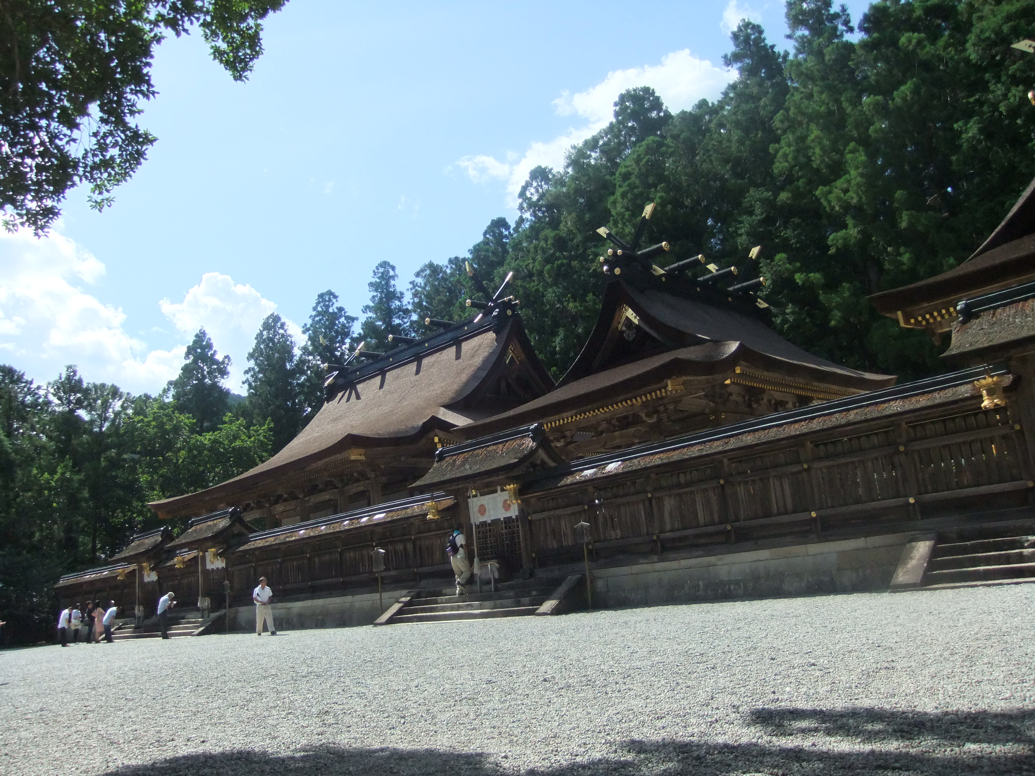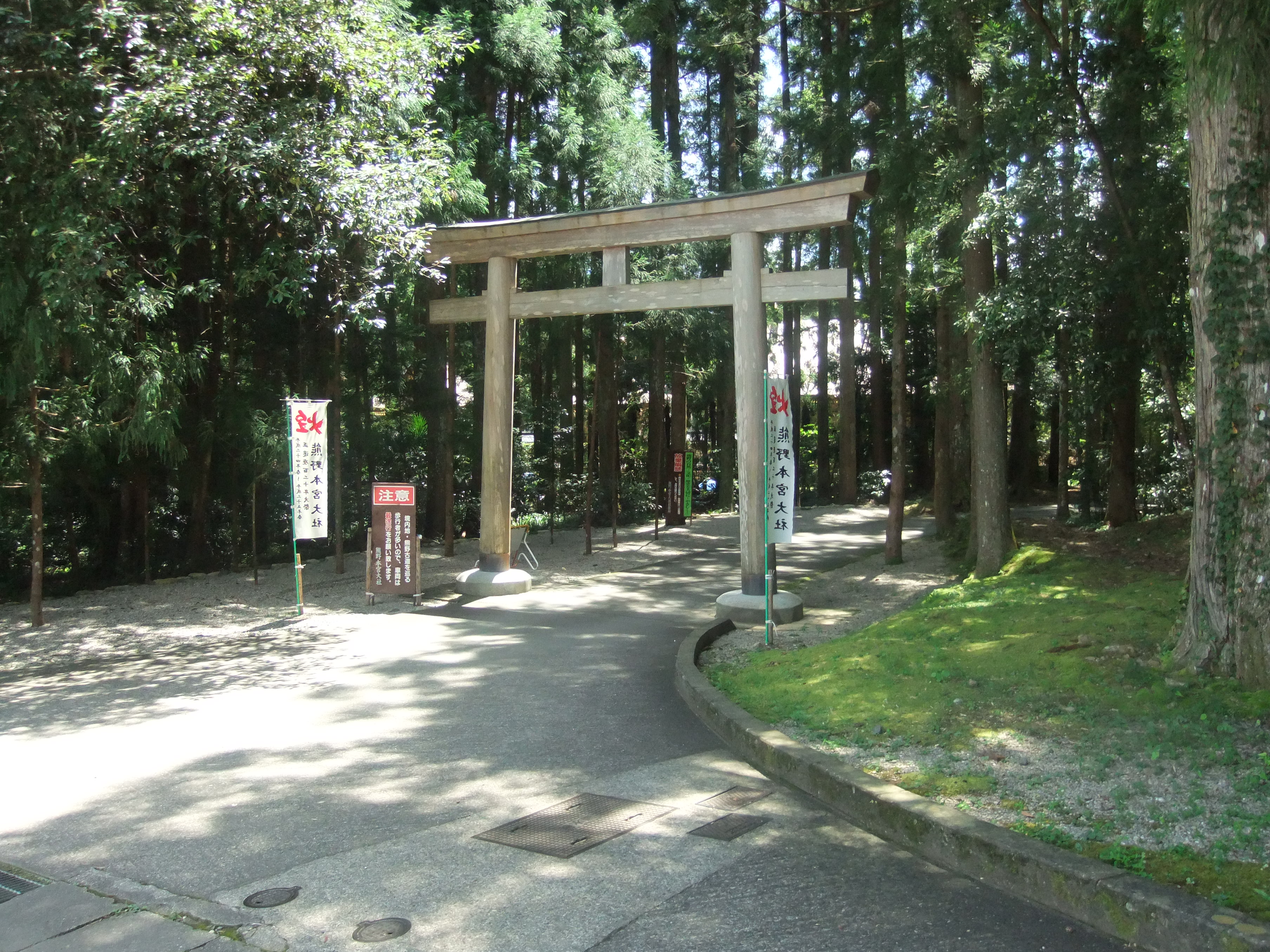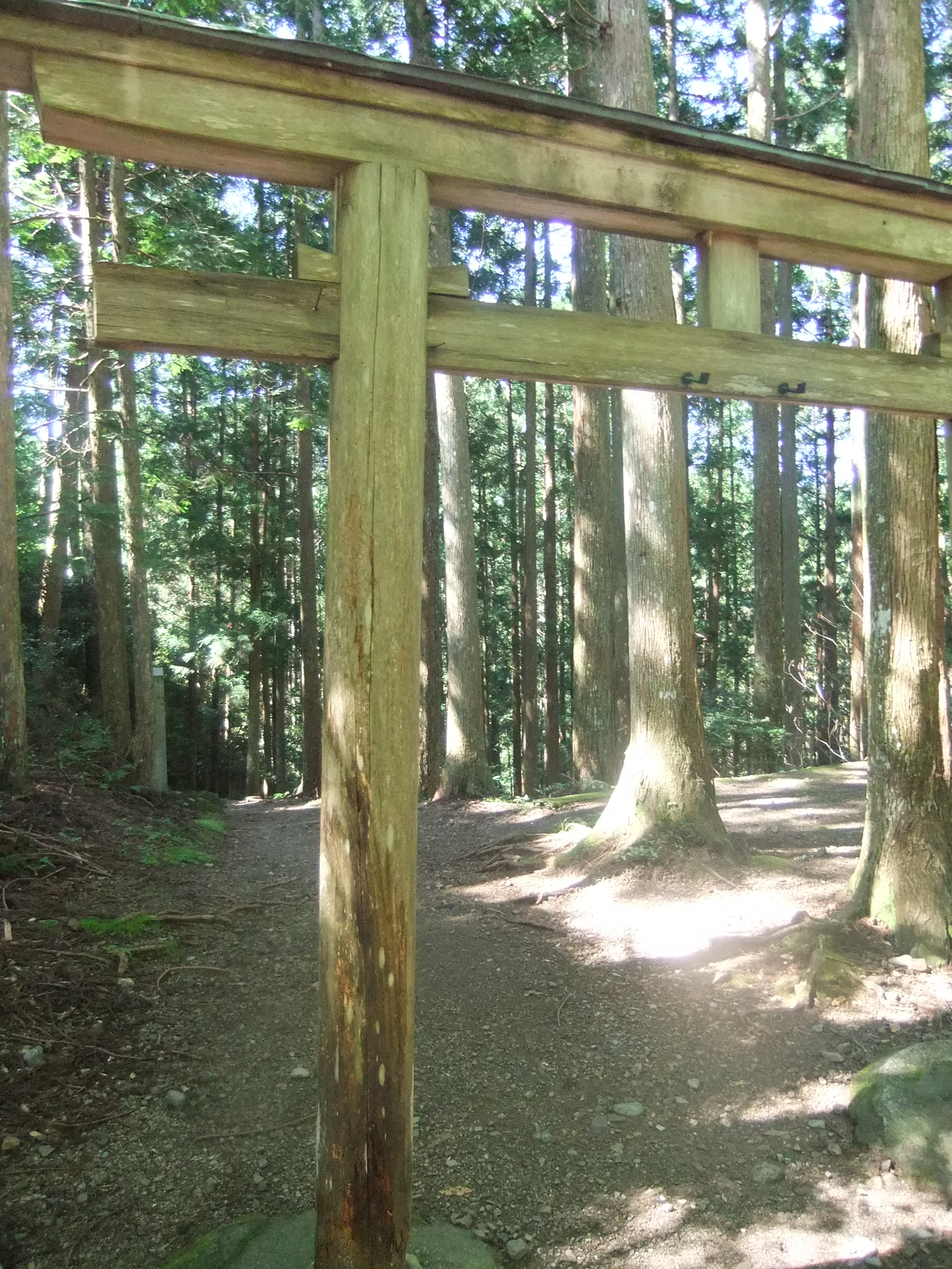 山道を登ったり下ったりしてそろそろバテてきたな思う頃に熊野本宮大社の裏の鳥居をくぐって境内へ入りゴールです。