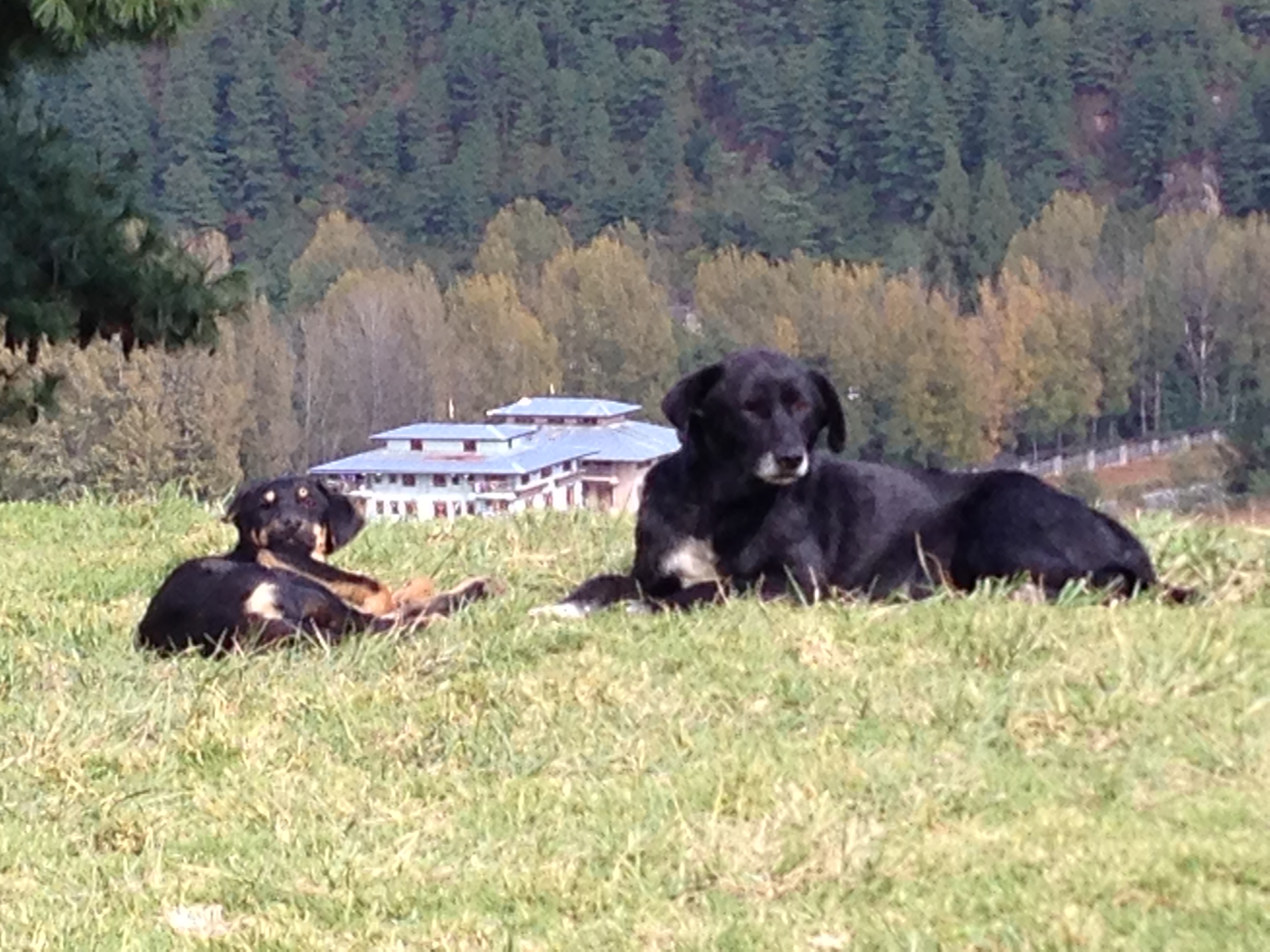 ブータンでは殺生してはいけません。だから魚釣りをしている人を見る事はありませんでした。蚊がとまっても殺さず払うだけというから生き物にとってここは天国でしょう。じゃあ料理に牛や鶏肉は?みんなインド人が殺したものを輸入します。これは少しずるい感じはしますが、鶏は卵を生ます為に牛は乳をしぼる為だけに飼っています。日本では捕まえて駆除される野良犬もブータンでは悠々と路上で暮らしています。というより町中にいっぱいいます。政府は駆除しない代わりにすべて野良犬に狂犬病のワクチンを注射したそうです。日本でダライラマの講演を聞きに行った際に彼はこんな話をしてくれました。「私達は生まれ変わり(輪廻転生)をくりかえします。私達が現世で生き物を殺したり、食べる場合、それらは前世で自分の愛する人や世話になった人であるかもしれないのですよ。そう考えると、むやみに他の生き物を殺したり食べたりできないでしょう」