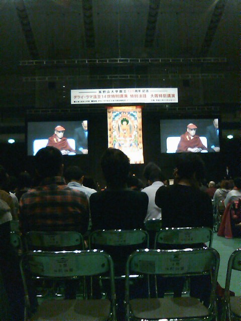昨日大阪の舞州で行われたダライラマ14世の講演はこころに響く内容でした。 ダライ・ラマのダライとはモンゴル語で「大海」を、そしてラマはチベット語で「上人」を意味します。 そして人々を救うために輪廻を繰り返すダマイラマはチベット仏教において慈悲の菩薩である観音の化身として尊崇されてきました。 この方、テンジンギャツオ僧侶がその14代目となります。 (人生の本当の意味 ) 14thダライラマ 私たちはこの惑星の一時滞在者です。私たちがここにいるのはせいぜい90年か100年に過ぎません。その間私たちは、自分の人生によって、何か善いこと、役に立つことをしようと努めなければなりません。もしもあなたが他の人々の幸福に寄与するならば、あなたは本当のゴールを見つけるでしょう。それが人生の本当の意味なのです。 講演中も氏はしきりに「慈悲の心」を説いておられました。 「相手の苦しみが和らげばいいと思いなさい。」「やさしさと思いやりを高める方法を知りなさい。」「空とは無(何もないということ)ではなく、すべてのものは他の存在に依存して存在しているということです。その空の意味を知る知恵を育みなさい。」「まず自分を愛しなさい。」「人も動物もこの世のすべてのものを母と考え、いとしく思いなさい。前世においては母であったかもしれません。」「心をリラックスさせ休息をとりなさい。」「苦しみから救われたいと思うだけでなく自分で働きかける菩提心を持ちなさい。」 このように、私たちに数々のメッセージを残されました。 次から次と溢れ出す言葉には似つかわない衣とお揃いの赤いサンバイザー(ライトがまぶしいのでという)がとても印象的でした。